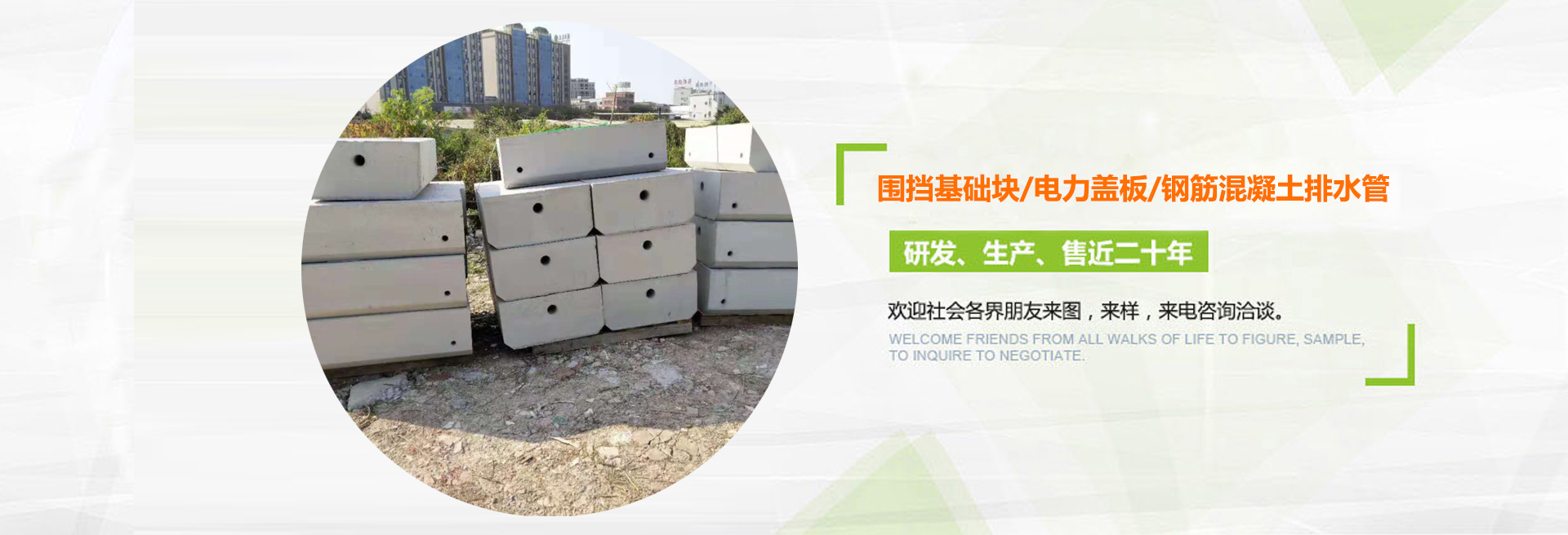 深圳富華環(huán)保建筑材料有限公司(簡稱富華環(huán)保建筑材料)是一家專業(yè)研發(fā)生產(chǎn)與銷售水泥預(yù)制品的公司,從2001年開始至今,主要生產(chǎn)的產(chǎn)品有:圍檔基礎(chǔ)塊、環(huán)保透水磚、河道護坡磚、停車場植草磚、電纜溝蓋板、預(yù)制井筒井座、立道牙、平道牙、鋼筋混凝土排水管、頂管、排煙道管、隔離敦、河道仿木欄桿等水泥預(yù)制構(gòu)件, 可針對每一個客戶的不同條件和要求,設(shè)計與生產(chǎn)各種水泥預(yù)制構(gòu)件。